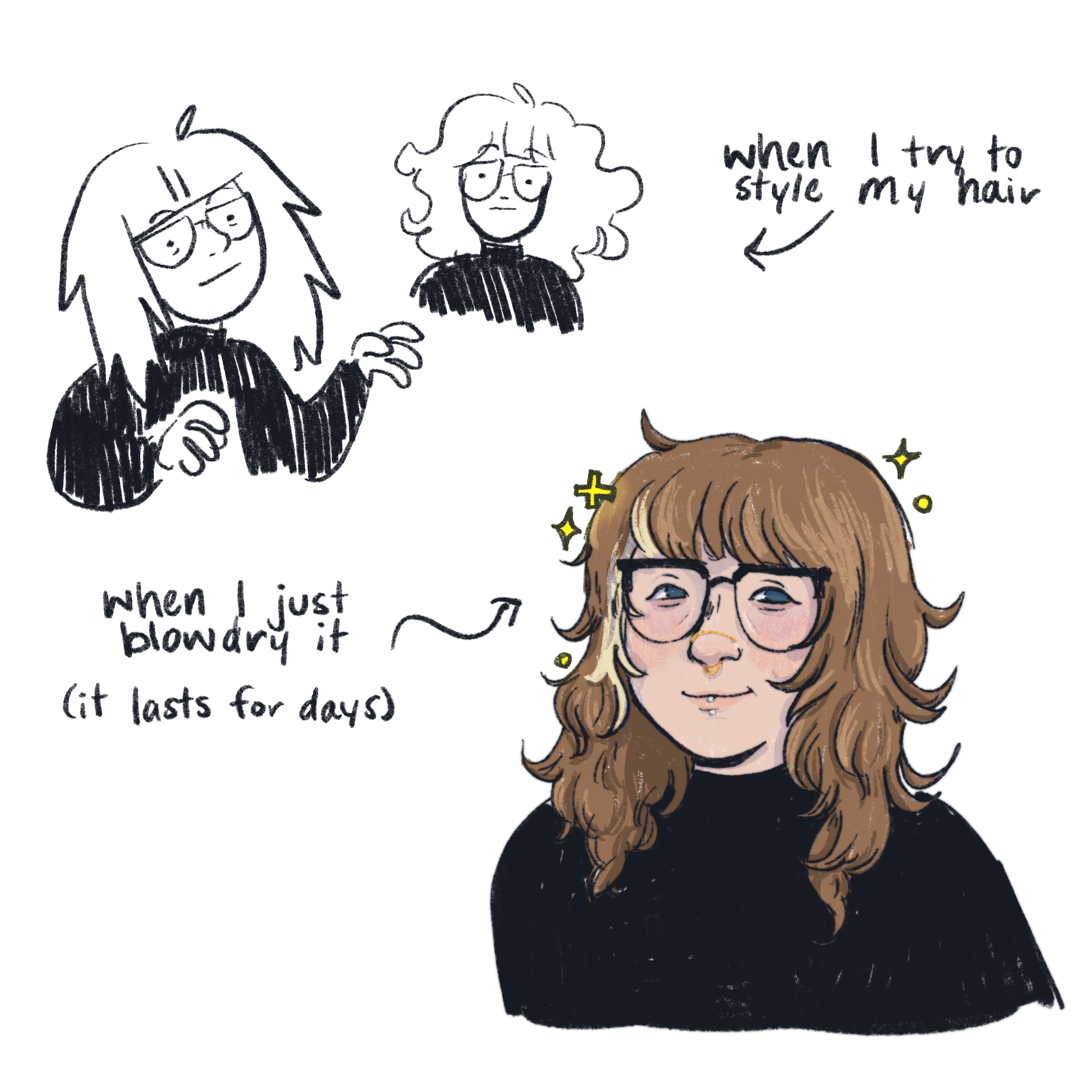 I have figured out how to make my hair perfect. I have tried curling it. Using a flat iron. Letting it curly with air drying. Scrunching it. Everything, but I have just perfected the blowdrying technique. Now, it's so perfect. It's exactly how I wanted it to be.